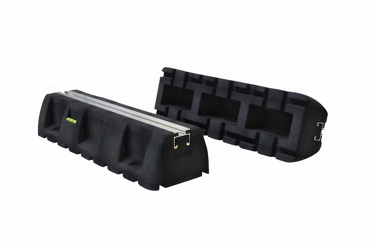 Stabil og vibrationsdæmpende montageblok med indbygget libelle for nem montering i vater. Fremstillet i vulkaniseret genbrugt gummi og alu-profil for ekstra styrke. Ideel til varmepumper, klimaanlæg og andre udendørs enheder.