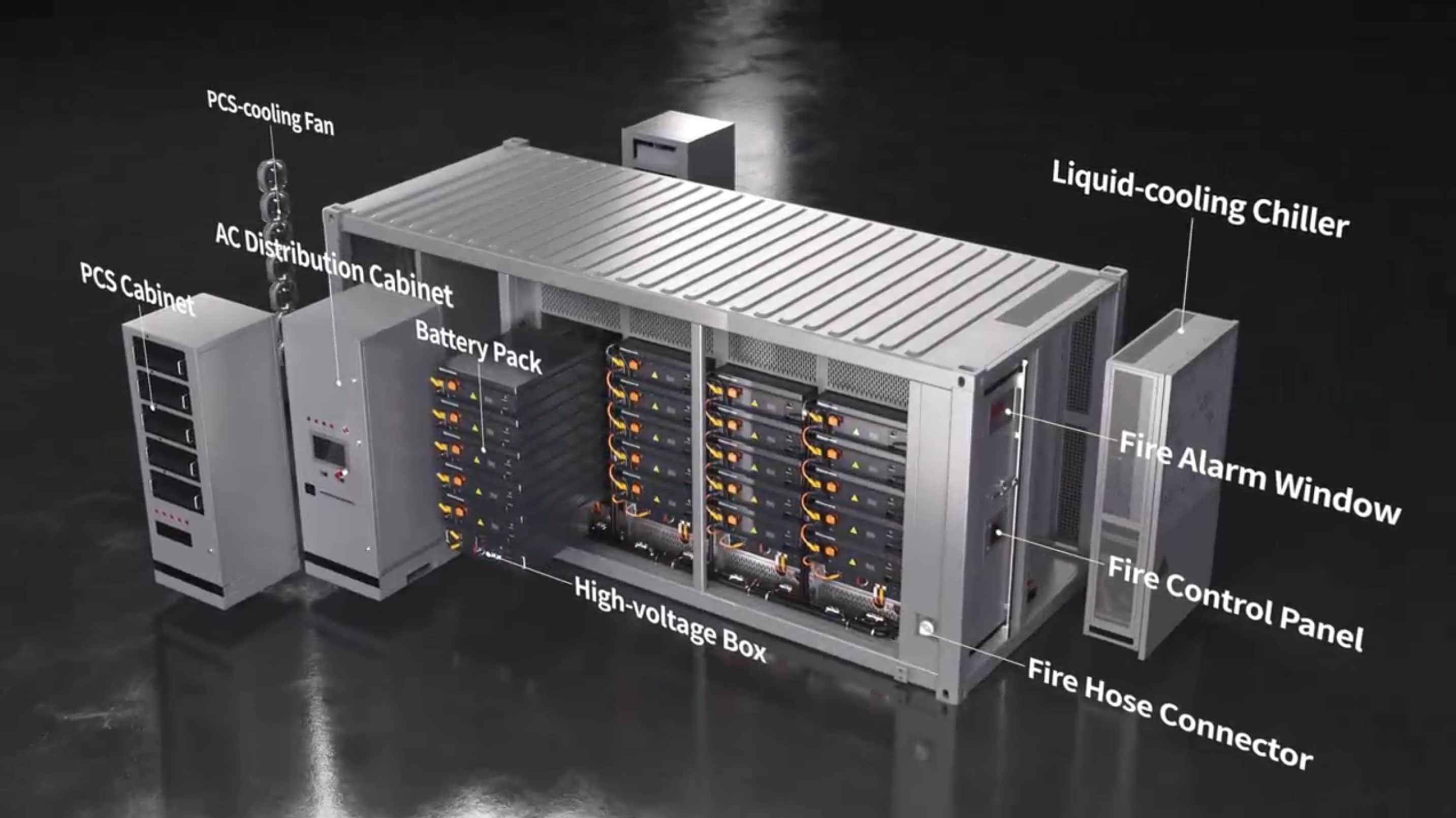 Industrielt batterisystem: Komplet 2170 kWh løsning i 20 ft container.