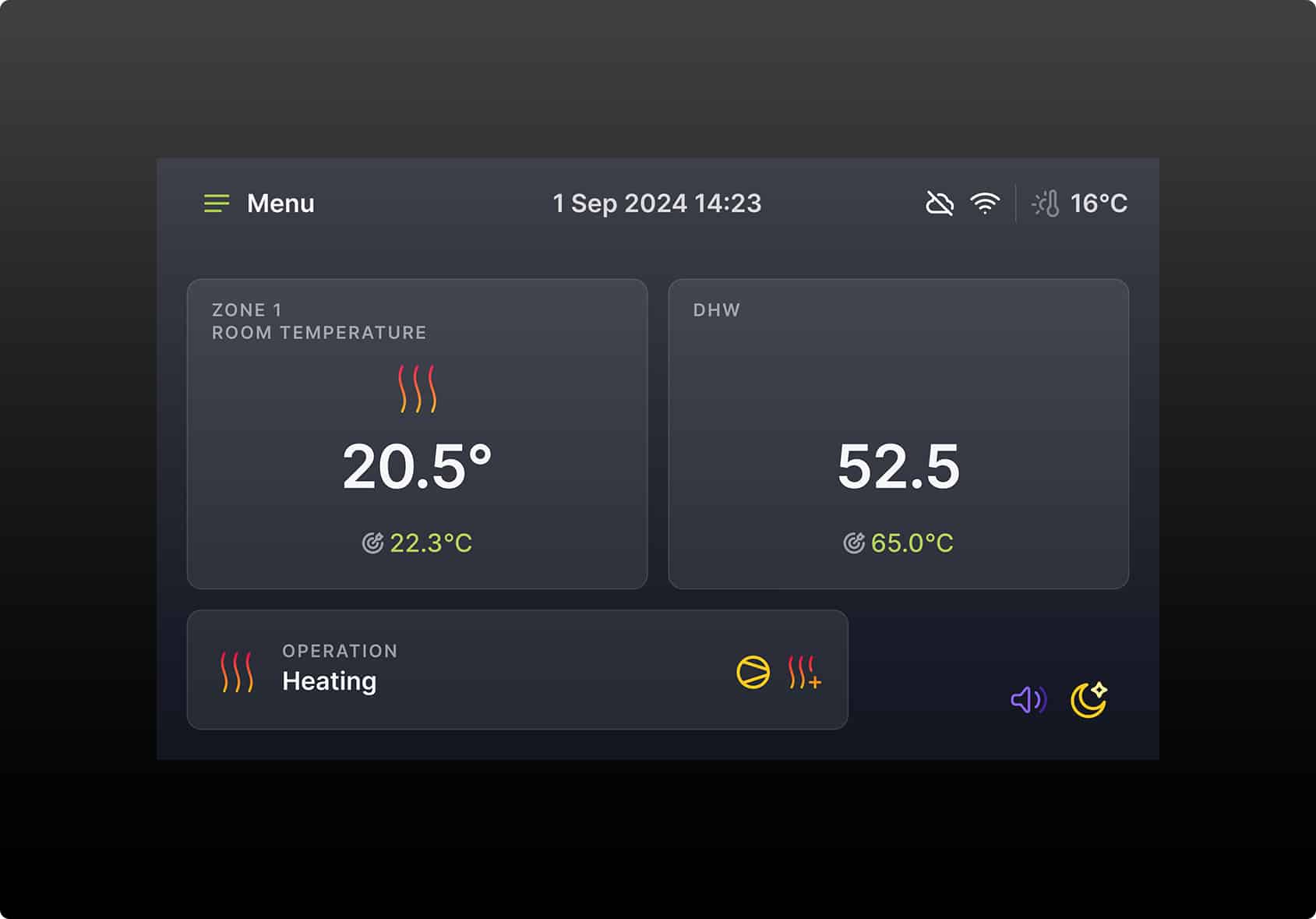 Automatisk varmekurve: Vandtemperaturen justeres intelligent efter omgivelsestemperaturen.